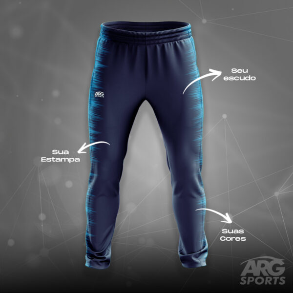 Calça de Agasalho Argsports 100% personalizável, confeccionada em Chimpa com estamparia sublimada, sem limite de cores ou patrocinadores! Incluso no valor a adição de nome, número, logos e escudo personalizados. Peça também o Kit de agasalho completo, adicionando uma Jaqueta 100% personalizada.