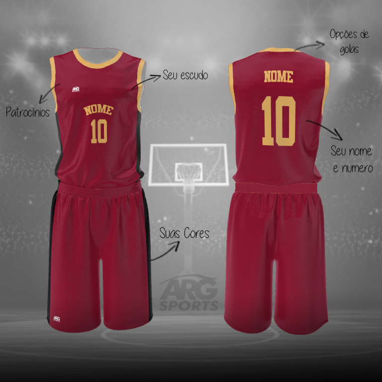 Uniforme personalizado para Basquete confeccionado em Dry Fit com proteção UV. Estampa sublimada, sem limite de cores ou patrocinadores, incluso nome, numero e escudo personalizados.