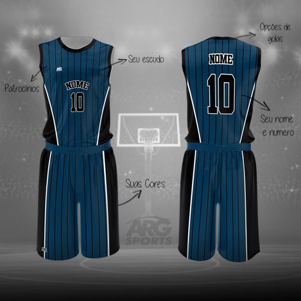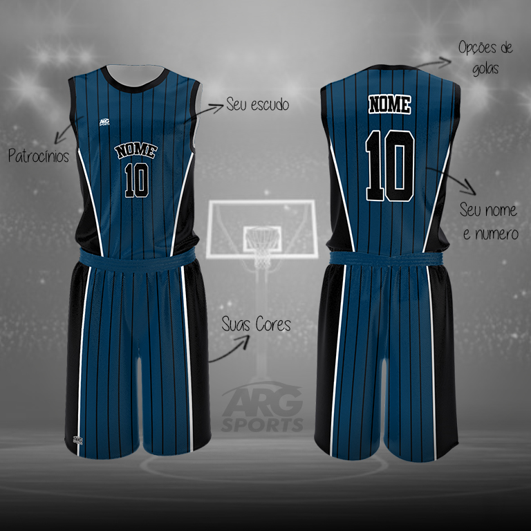 Uniforme personalizado para Basquete confeccionado em Dry Fit com proteção UV. Estampa sublimada, sem limite de cores ou patrocinadores, incluso nome, numero e escudo personalizados.