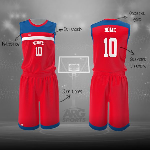 Uniforme personalizado para Basquete confeccionado em Dry Fit com proteção UV. Estampa sublimada, sem limite de cores ou patrocinadores, incluso nome, numero e escudo personalizados.